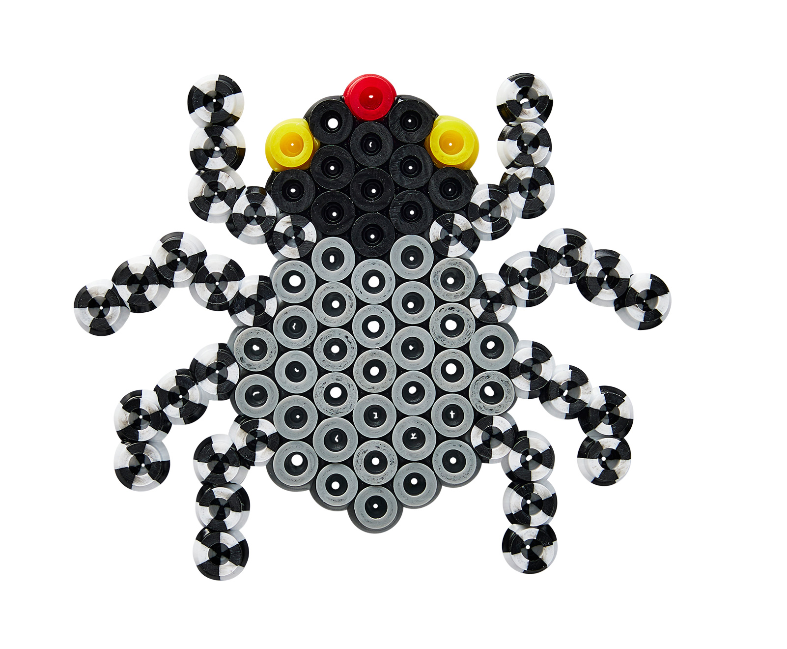 Approx. 4.000 beads, 2 small pegboards: Square No. 220-18 and hexagonal No. 223-04. Colour printed design sheet, instructions and ironing paper.