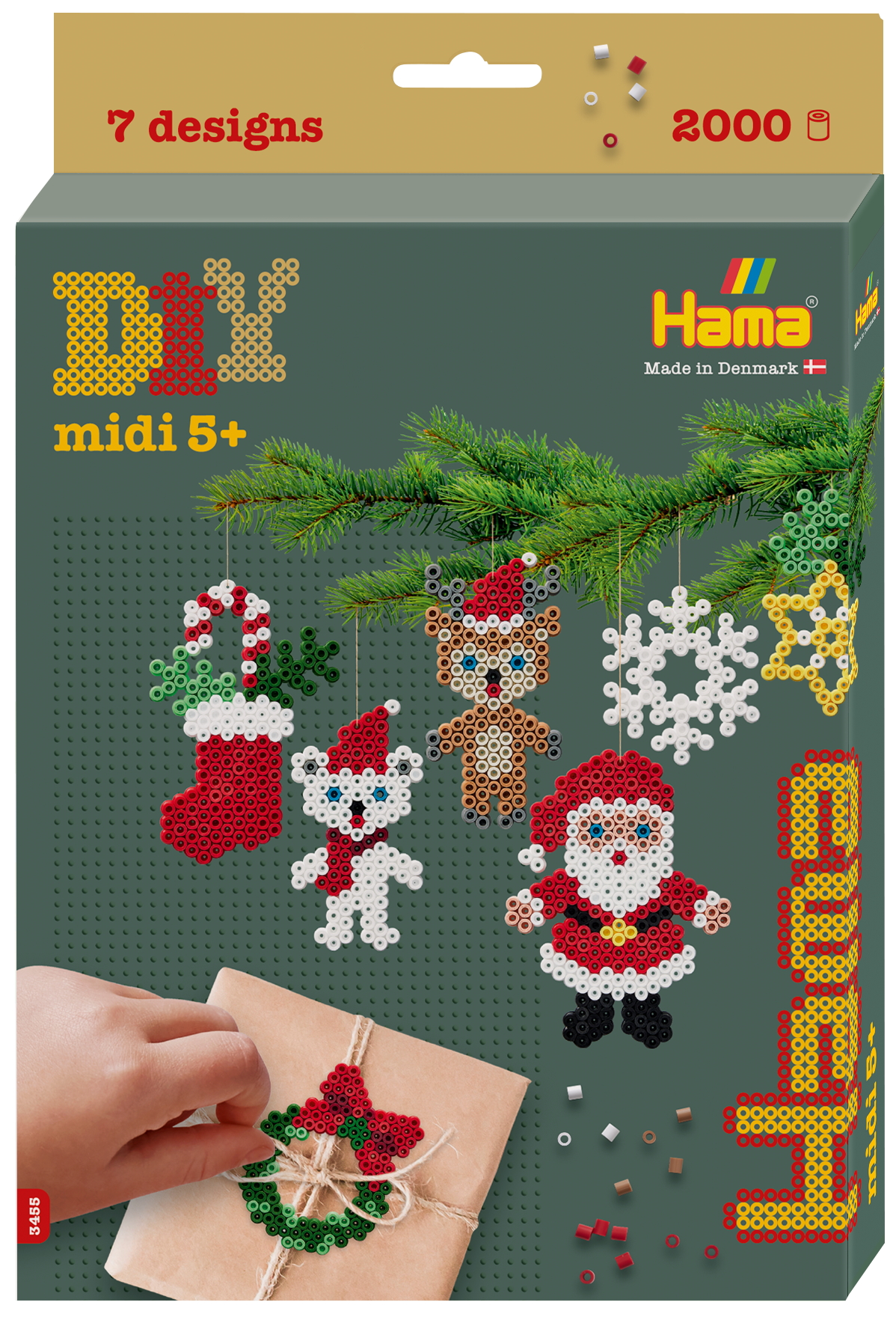 Approx. 2.000 beads, 1 medium hexagonal pegboard No. 329, colour printed design sheet, instructions and ironing paper.