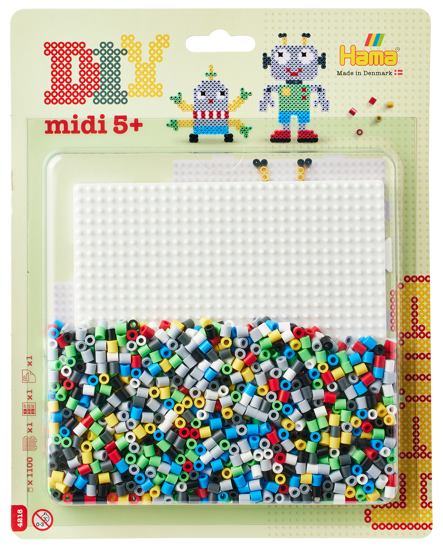 Aprox. 1.100 cuentas, 1 placa cuadrada grande núm. 234, instrucciones y papel planchable.