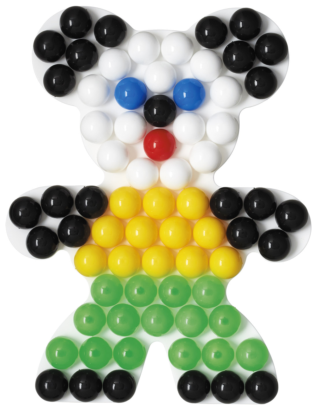 Placer les pions dans les perforations de la plaque est vraiment… un jeu d’enfant, les ressortir également, ce qui permet aux enfants de modifier leur motif à loisir ou de choisir d’en construire un autre, entièrement nouveau.