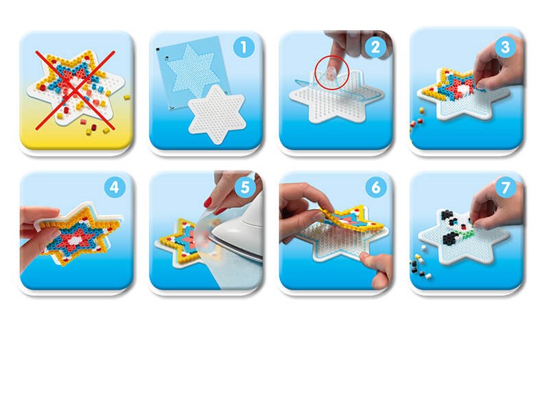 #7701 Barattolo da 20.000 perline, 5 basi, foglio con i soggetti, istruzioni per la stiratura e carta da stiro