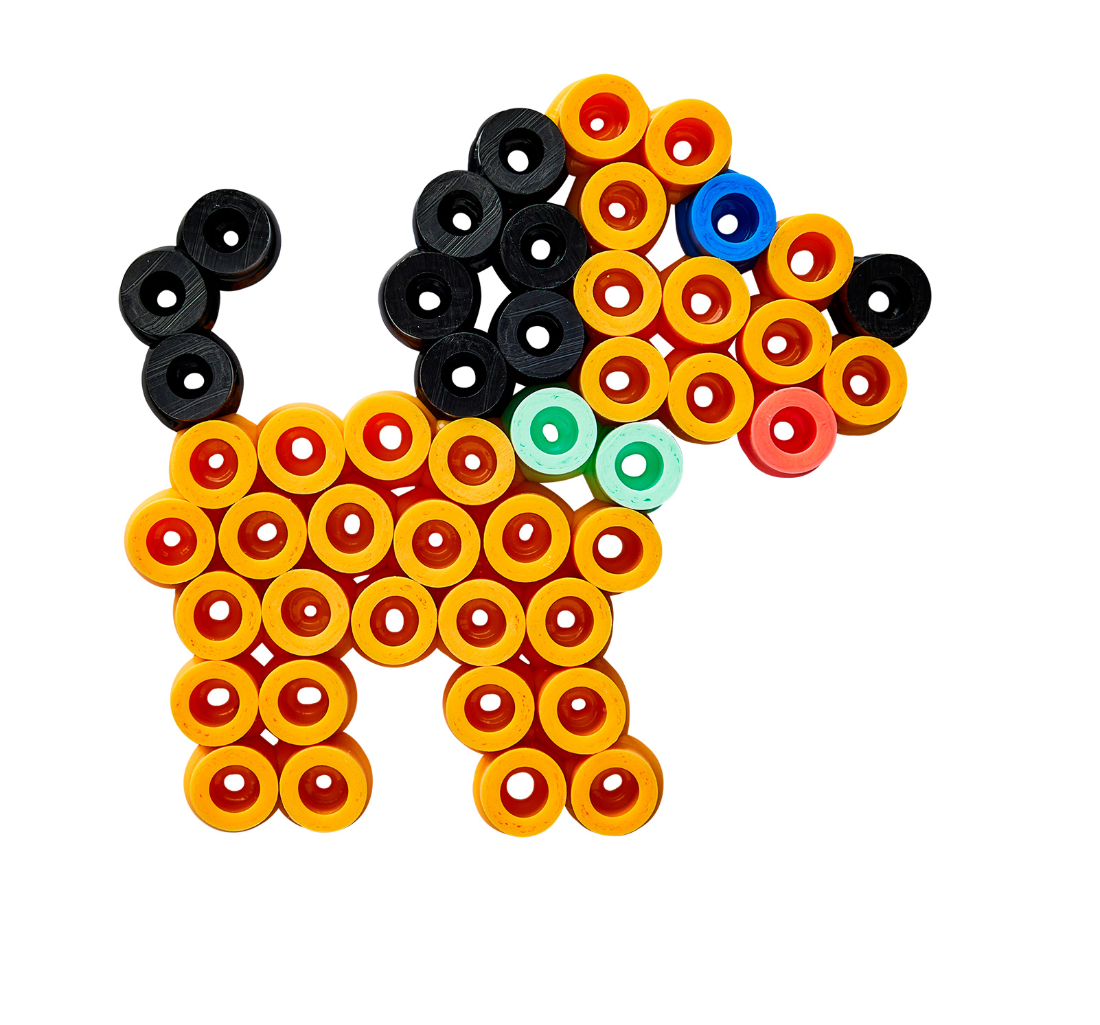 Ca. 100 perler, 1 gennemsigtig lille hund stiftplade nr. 8226 og strygepapir.